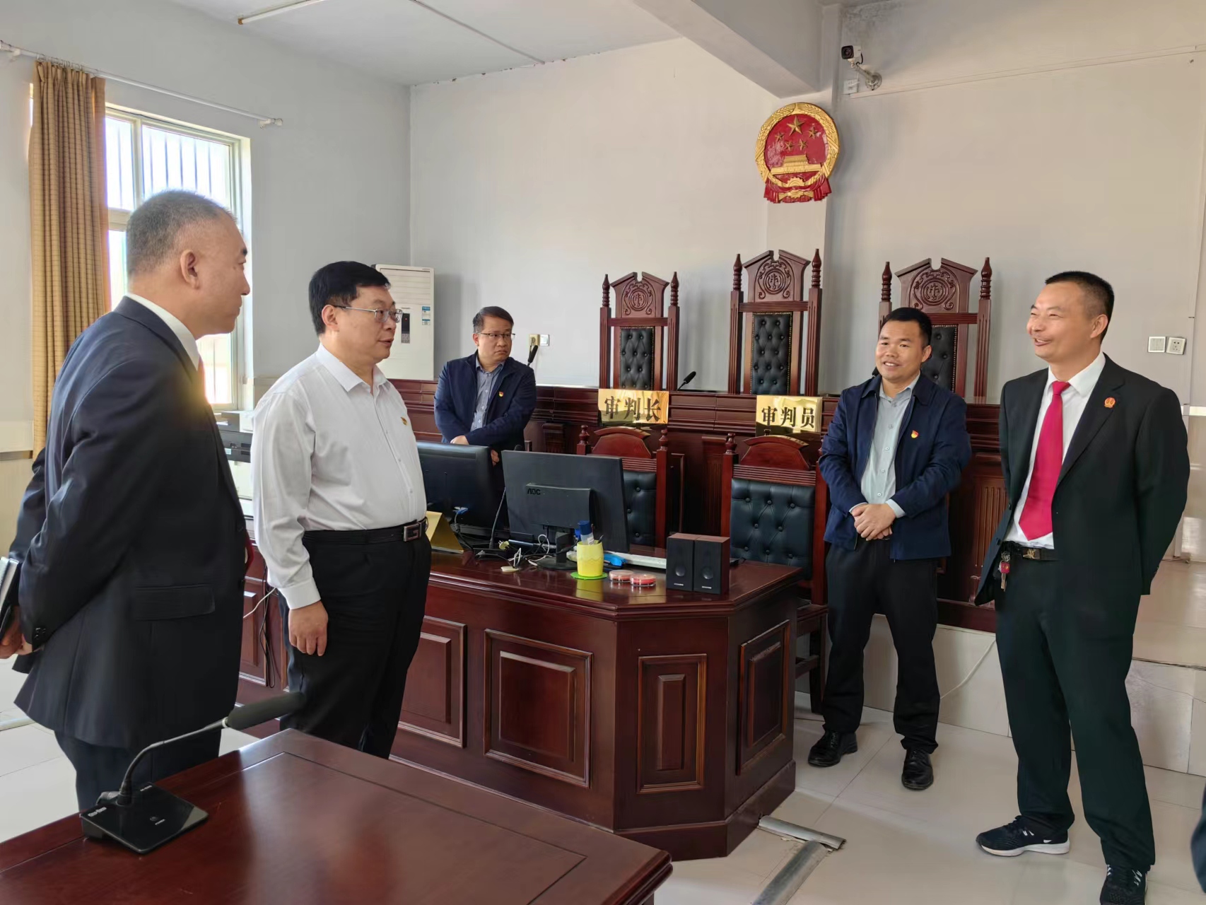 10月20日上午,漯河市中级人民法院党组书记、院长王晓东一行到舞阳县法院调研指导工作。该院党组书记、院长王戈新陪同调研。