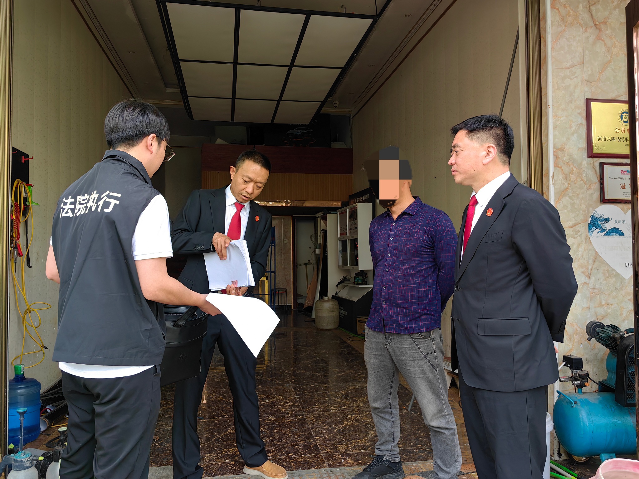 据悉,该案系抵押贷款合同纠纷。于某、胡某某与某金融机构签订抵押贷款合同,借款200万元。以二人名下位于漯河市漯舞路的房产进行抵押。判决生效后,于某、胡某某拒不支付200万元欠款,该金融机构遂向法院申请强制执行。法院依法查封了被执行人于某、胡某某名下的该处房产抵押给该金融机构。在经过网络拍卖一拍、二拍、流拍程序后,经申请执行人同意,法院裁定将查封的房屋交付申请执行人抵偿被执行人欠款。在经过执行法官李晓光多次走访调查后,对6间门面房张贴公告限期搬离无果后,法院决定进行强制清腾。