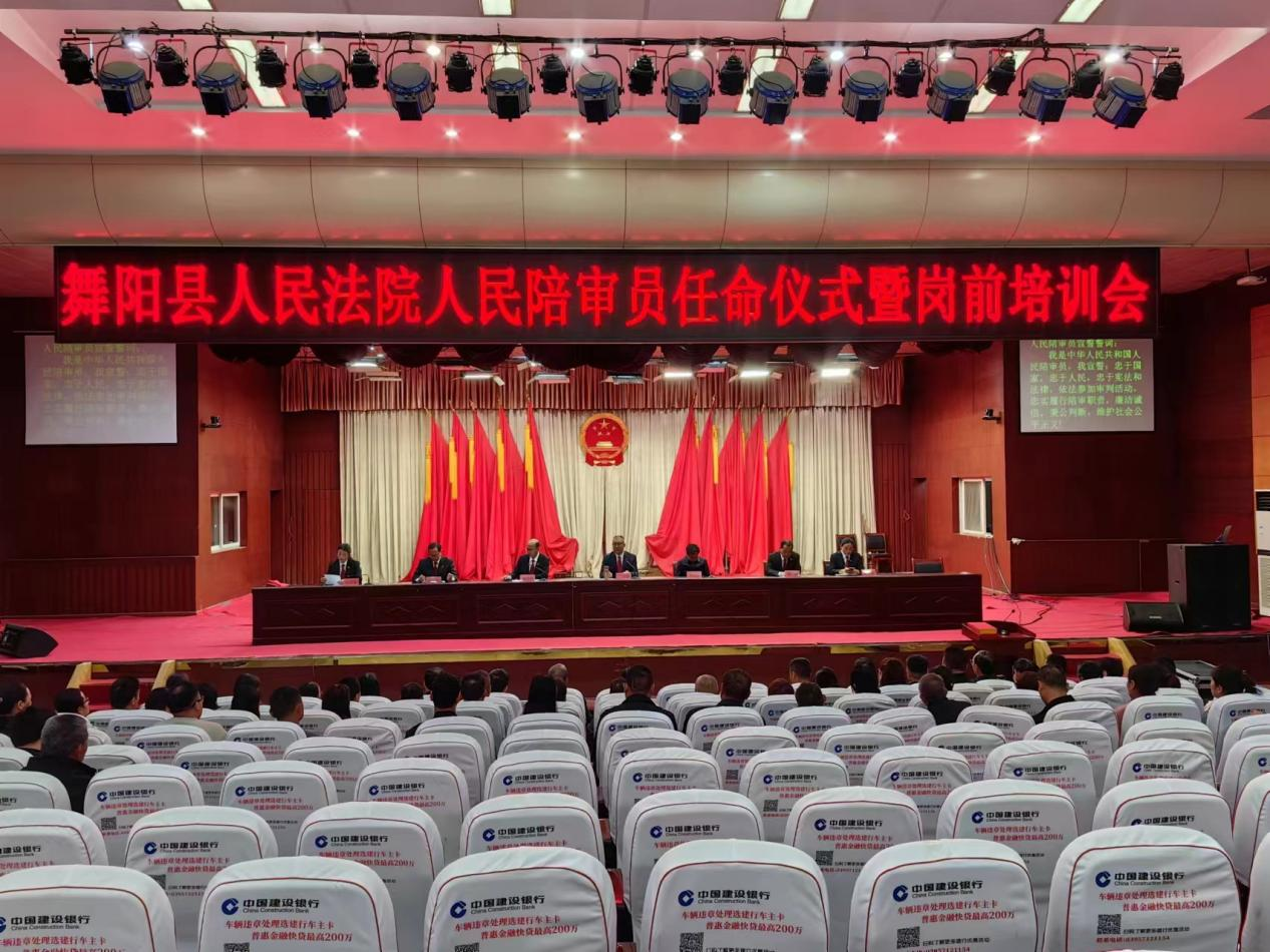 “我是中华人民共和国人民陪审员,我宣誓:忠于国家,忠于人民,忠于宪法和法律,依法参加审判活动……”4月30日,舞阳县法院举行新任人民陪审员任职宣誓仪式暨岗前培训。院党组书记、院长王戈新出席会议并讲话,县司法局党组书记、局长陈希宏列席会议,会议由院党组副书记、副院长魏剑林主持,100名新任人民陪审员参加会议。